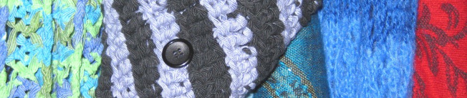 En zoals beloofd, een fotootje van m’n sjaals. Even een uitleg, van links naar rechts: lintsjaal, gehaakt door m’n oma en superlang. Daarnaast m’n probeersel, eronderdoor, dat lichtblauwe is een Ethiopische sjaal, gekregen van een vriendin, de petrolgroene is lekker warm en ook gekregen, de blauwe is een gebreide van m’n oma. De rode was een cadeautje van haar. Ik kom de winter zo wel door.